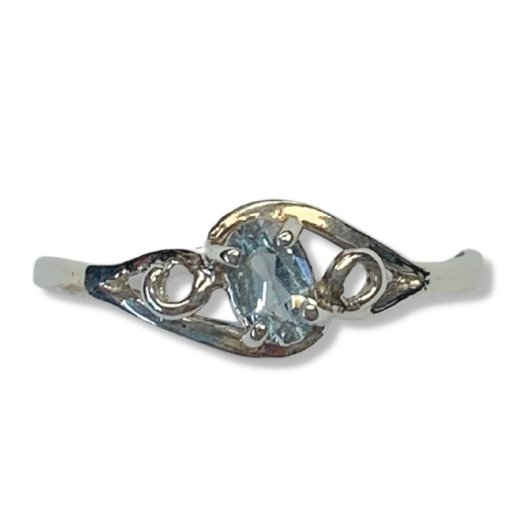 10K White Gold Aquamarine Fashion Ring Size6.5 1mm
