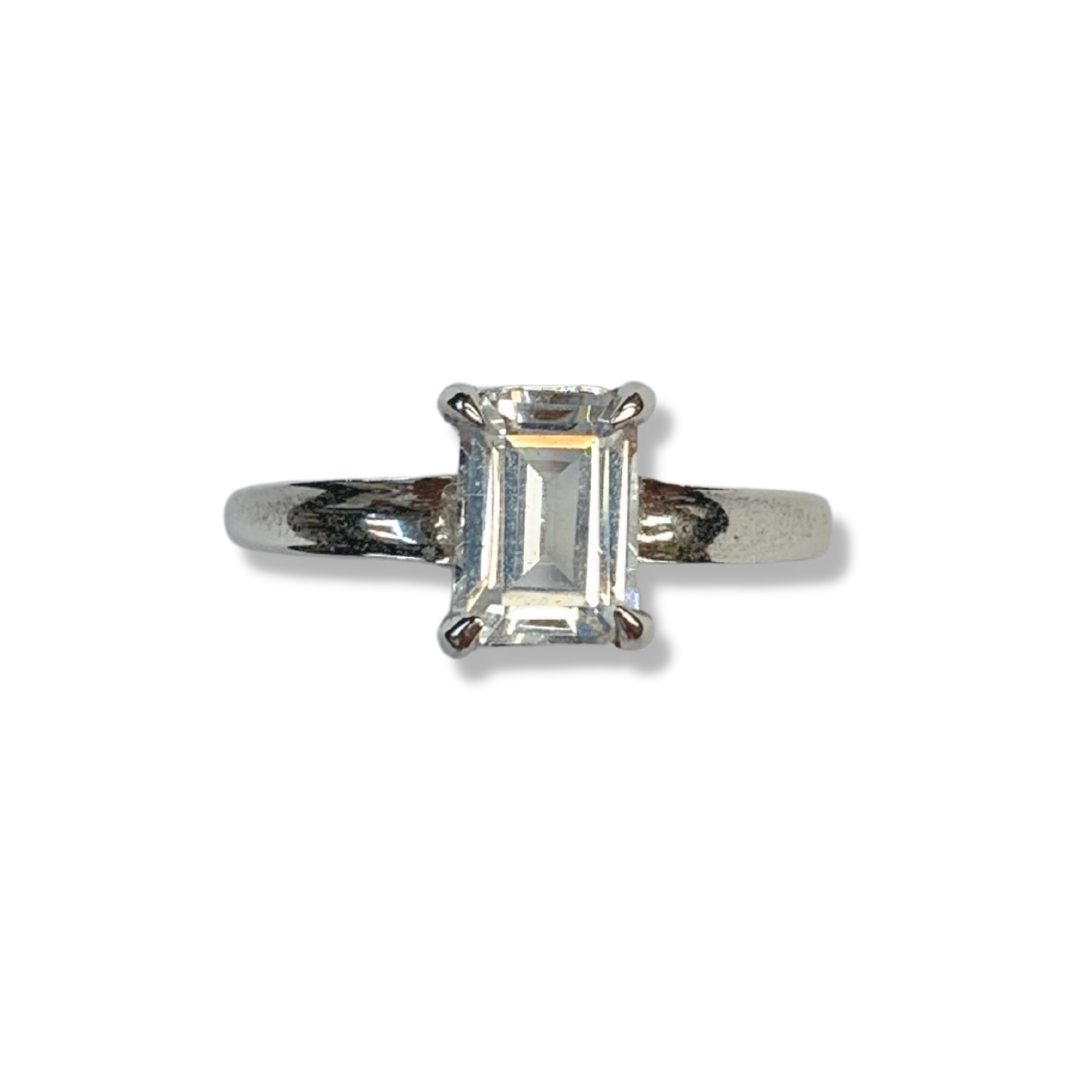 10K White Gold Emerald Cut April Birthstone Fashion Ring Size 6.5 MM Width: 1.25
