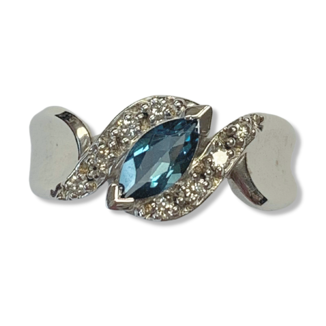 10K White Gold London Blue Topaz Polished Fashion Ring with .16ct Diamond Accents Size8 3mm