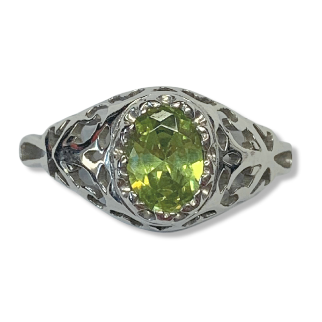 10K White Gold Peridot Fashion Ring With Filigree Accents Size6 1.5mm