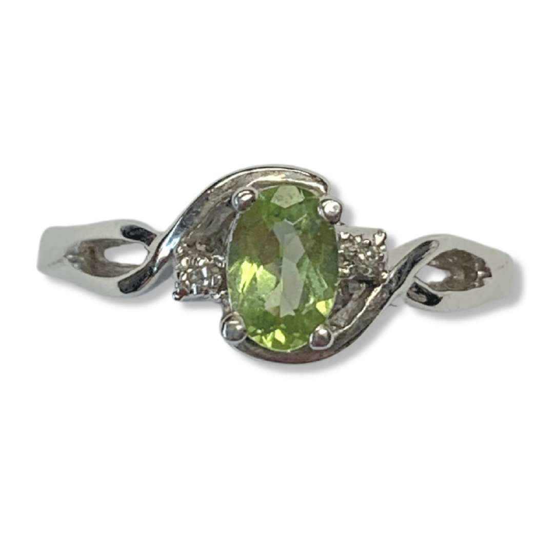 10K White Gold Peridot Fashion Ring Size7 1mm