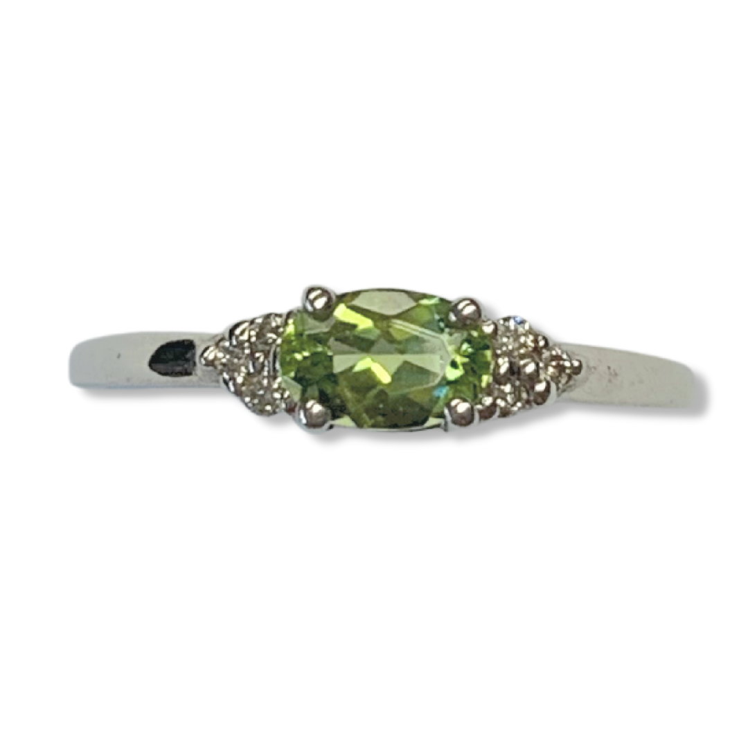 10K White Gold Peridot Fashion Ring with Diamond Accents Size7 1mm