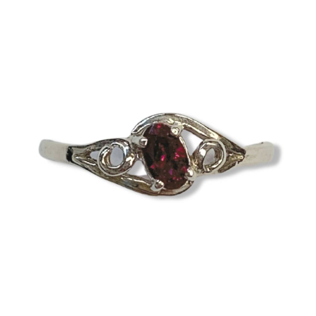 10K White Gold Red Birthstone Fashion Ring Size 6.5 MM Width: 1