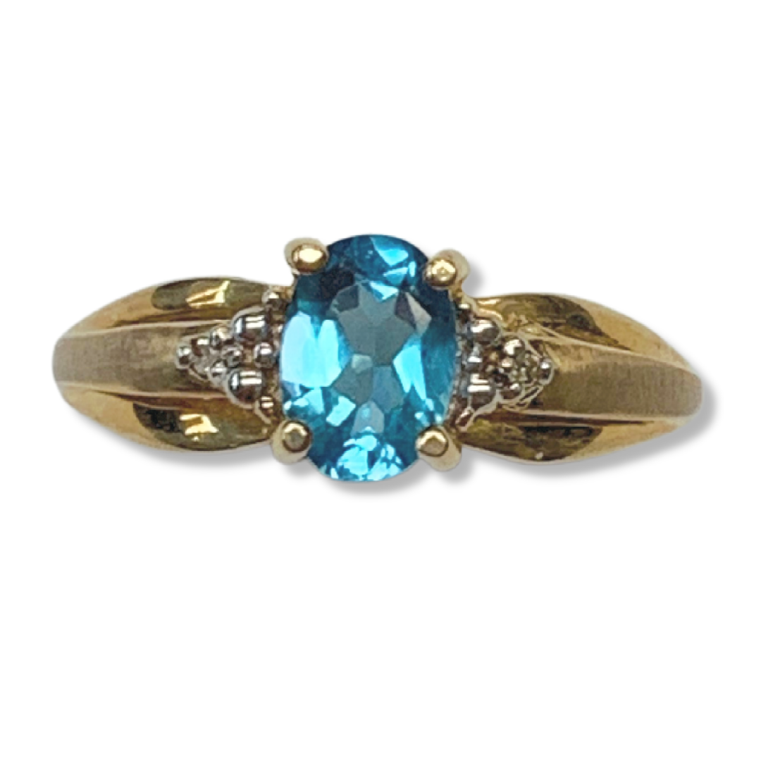 10K Yellow Gold Blue Topaz Polished And Brushed Fashion Ring Size7 1.5mm