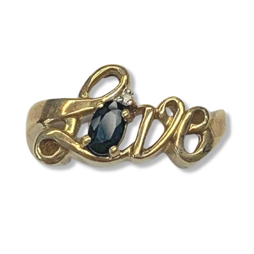 10K Yellow Gold Love Polished Fashion Ring with September Birthstone “o” and Diamond Accent Size6 2mm