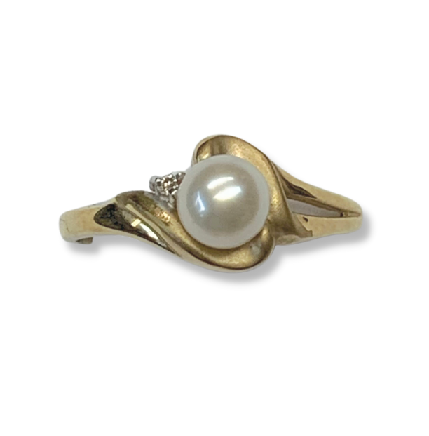 10K Yellow Gold Pearl Ring with Diamond Accent