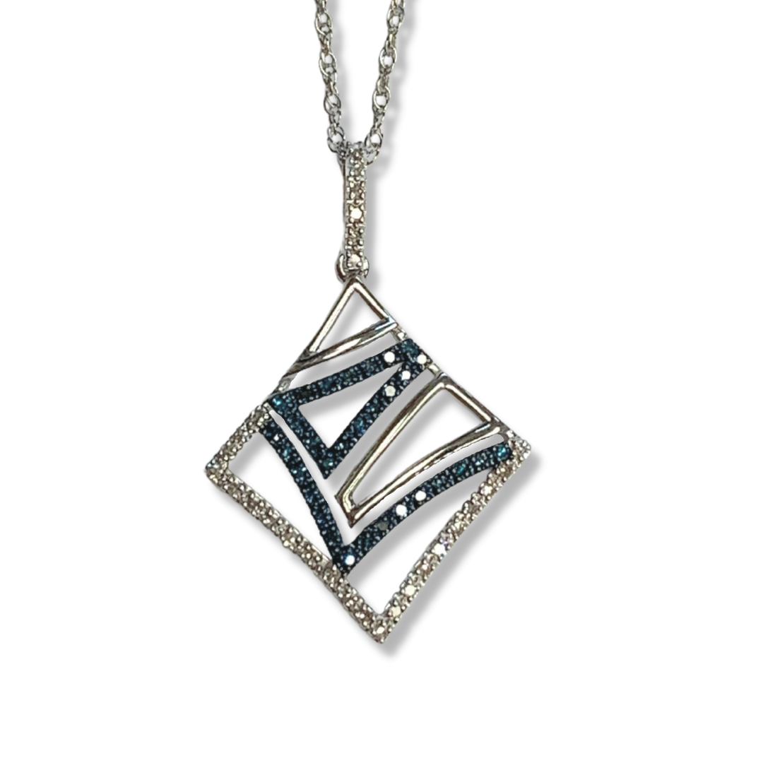 14K White Gold Blue and White Diamond Pendant