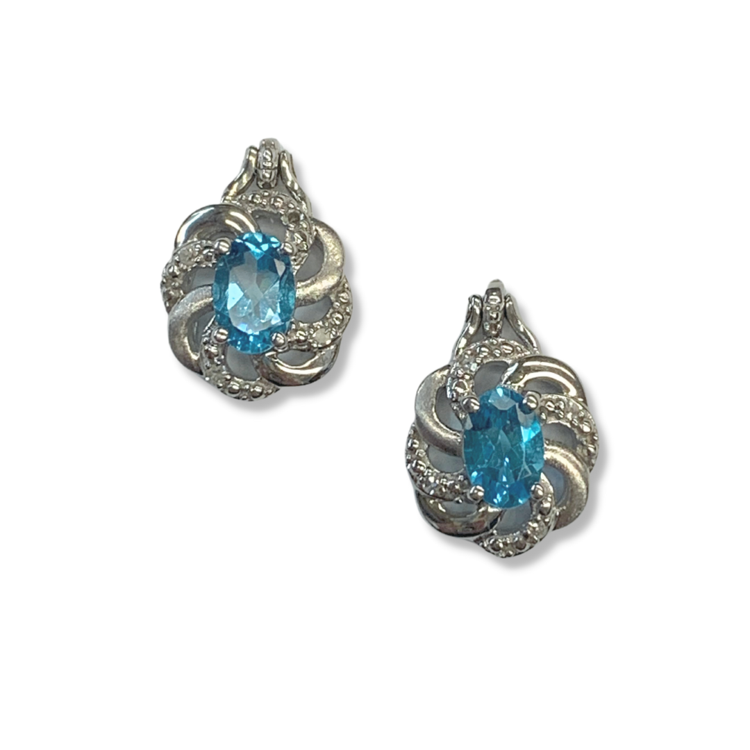 14K White Gold Blue Topaz Post Earrings with Diamond Accents