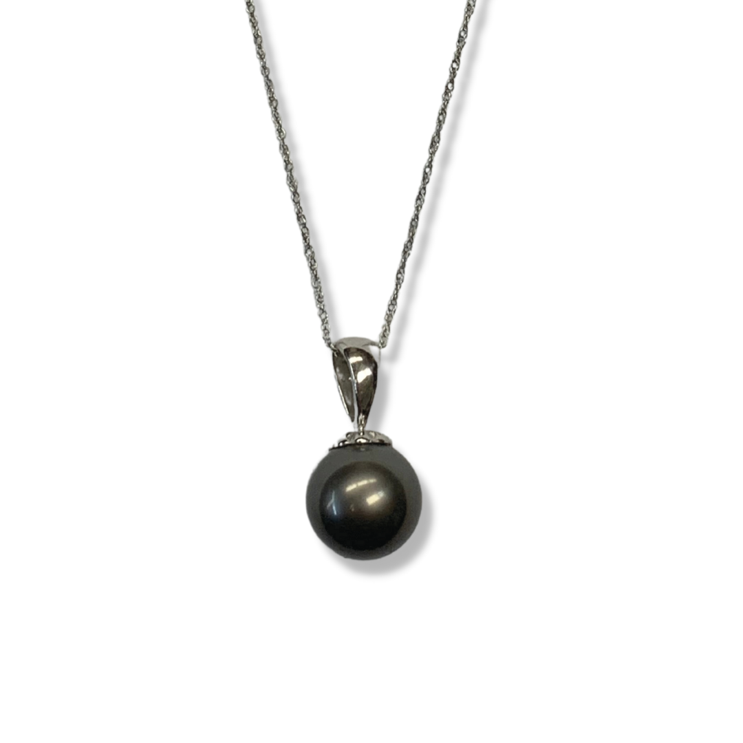 14K White Gold 18″ Baby Rope Necklace with Grey Pearl Pendant