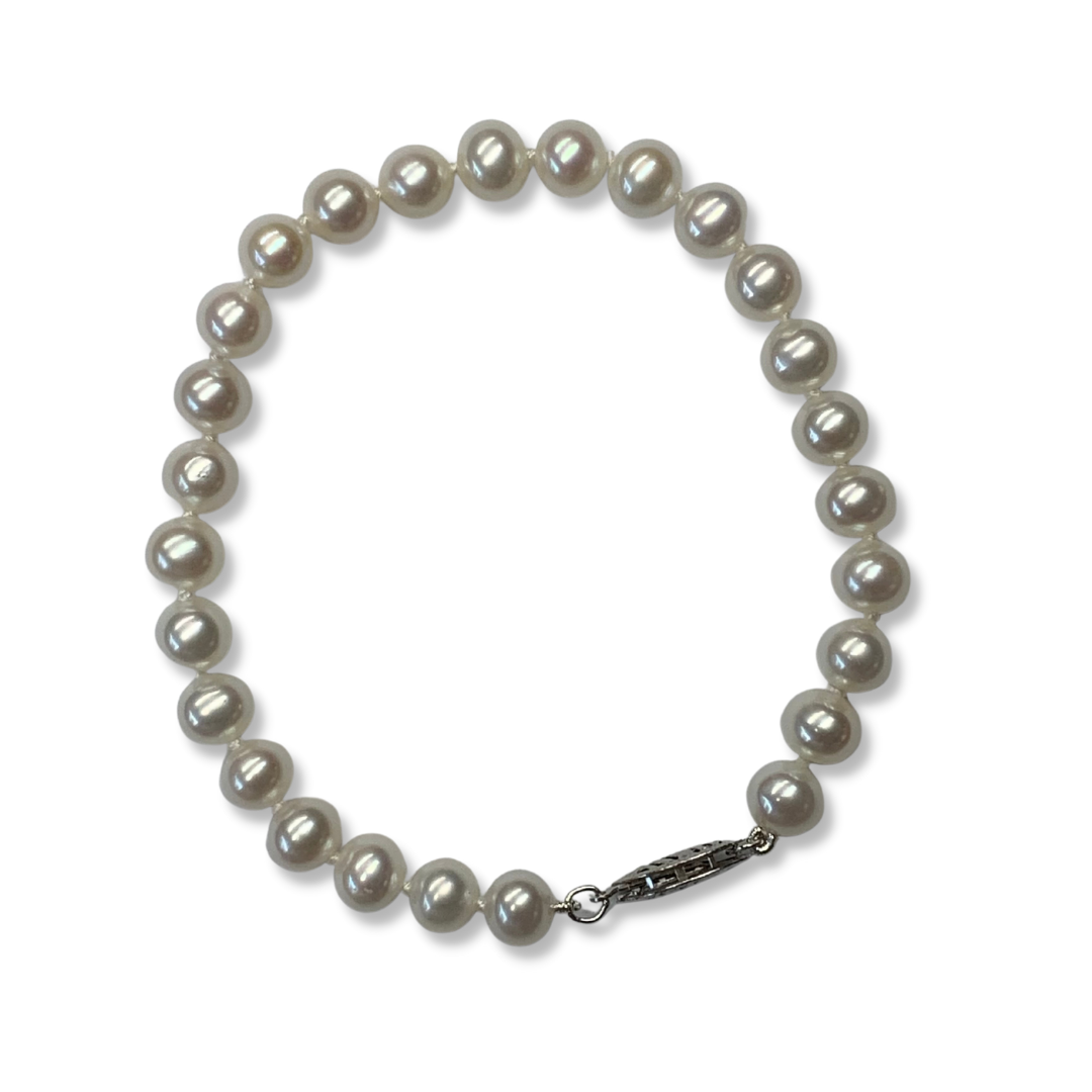 14k White Gold Fresh Water Cultured Pearl Bracelet 7″