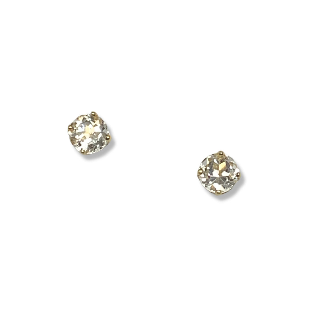 14K Yellow Gold April- White Topaz Birthstone 4mm Post Earrings