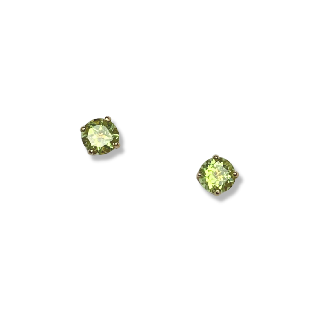 14K Yellow Gold August- Peridot Birthstone 4mm Post Earrings