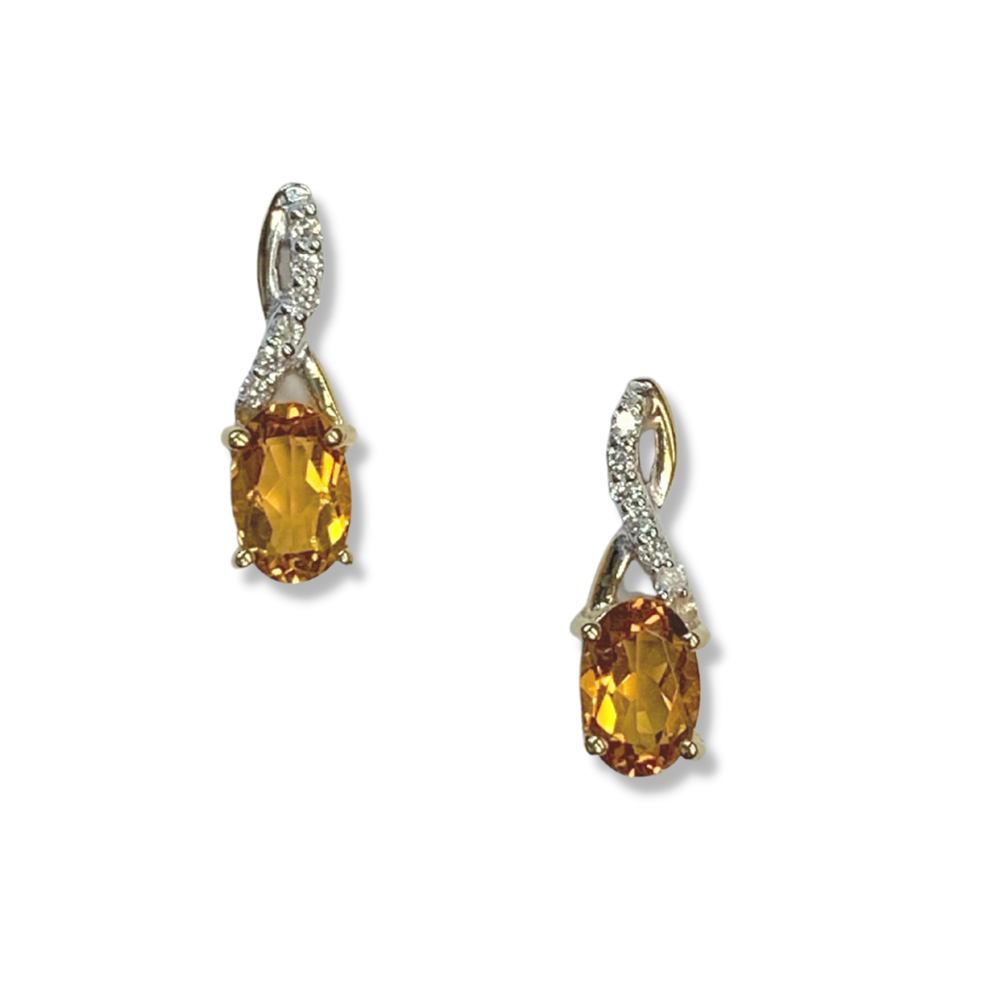14K Yellow Gold Citrine Dangle Earrings with Diamond Accents