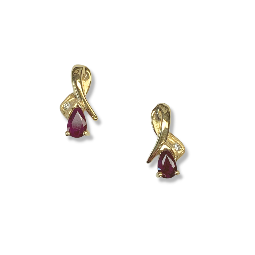 14k Yellow Gold Genuine Ruby Post Earrings with Diamond Accents