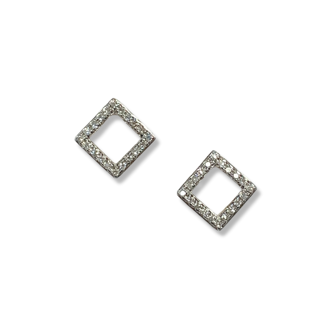 14K Yellow Gold .17 Ctw Pave Diamond Open Center Post Earrings