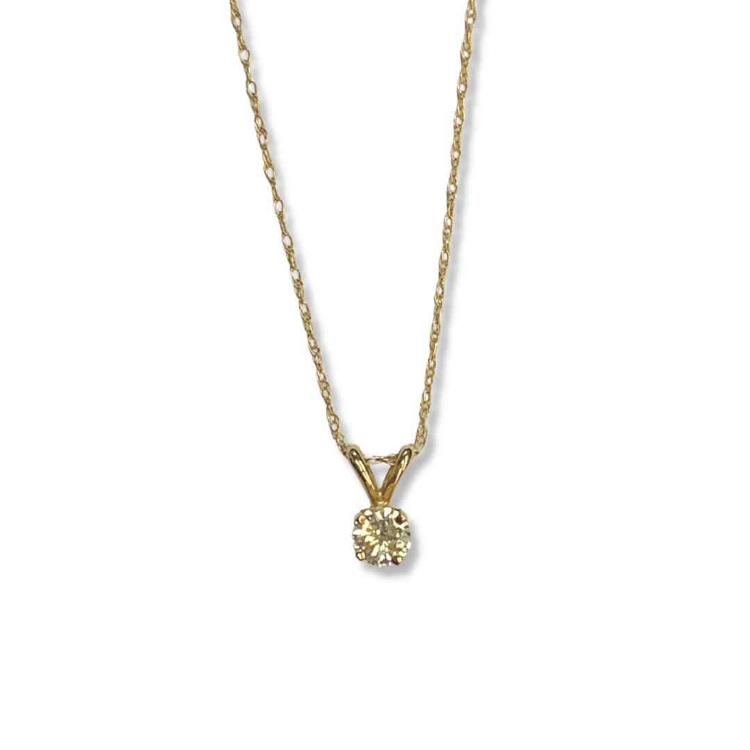 14K Yellow Gold .25Ct Rabbit Ear Solitaire Pendant on a 18″ Baby Rope