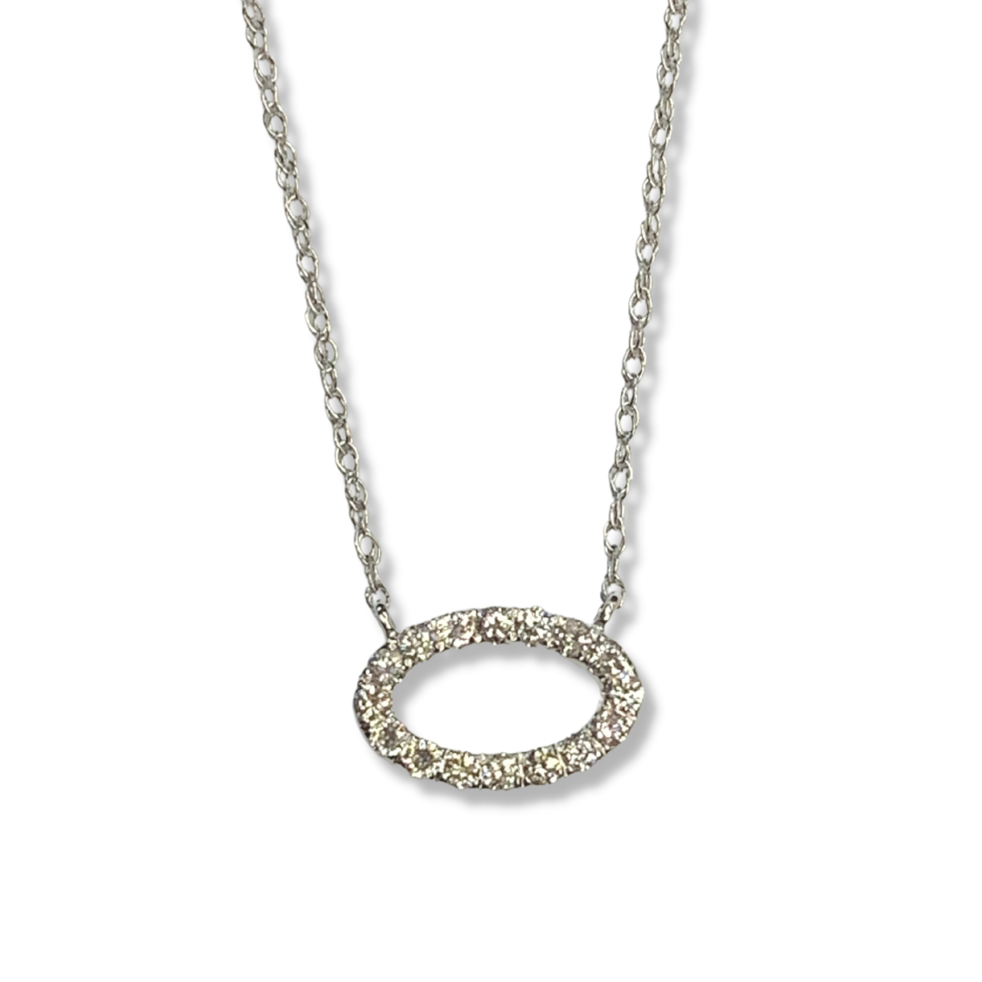 14K White Gold .24Ctw Diamond Oval Necklace on a 18″ Baby Rope