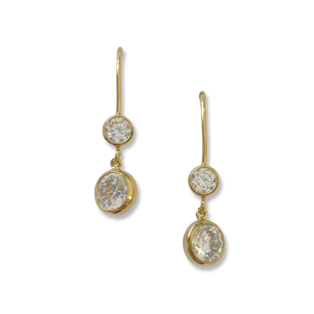 An everyday sparkle. 14/20 gold-filled french wire earrings feature a brilliant CZ drop. CZs measure 4mm and 6mm, and has a hanging length of 23.5mm.