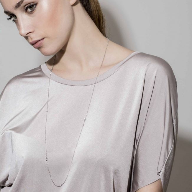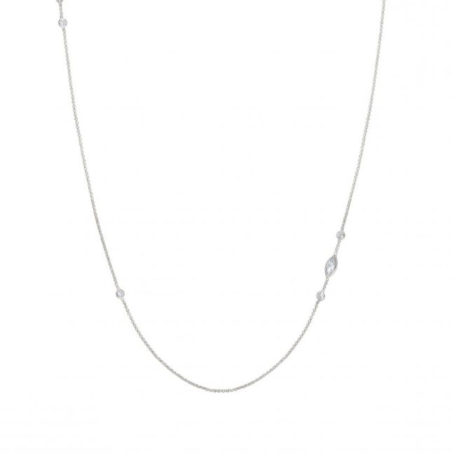 Necklace composed of a delicate sterling silver chain and a sprinkling of sparkling marquise cut Cubic Zirconia.
