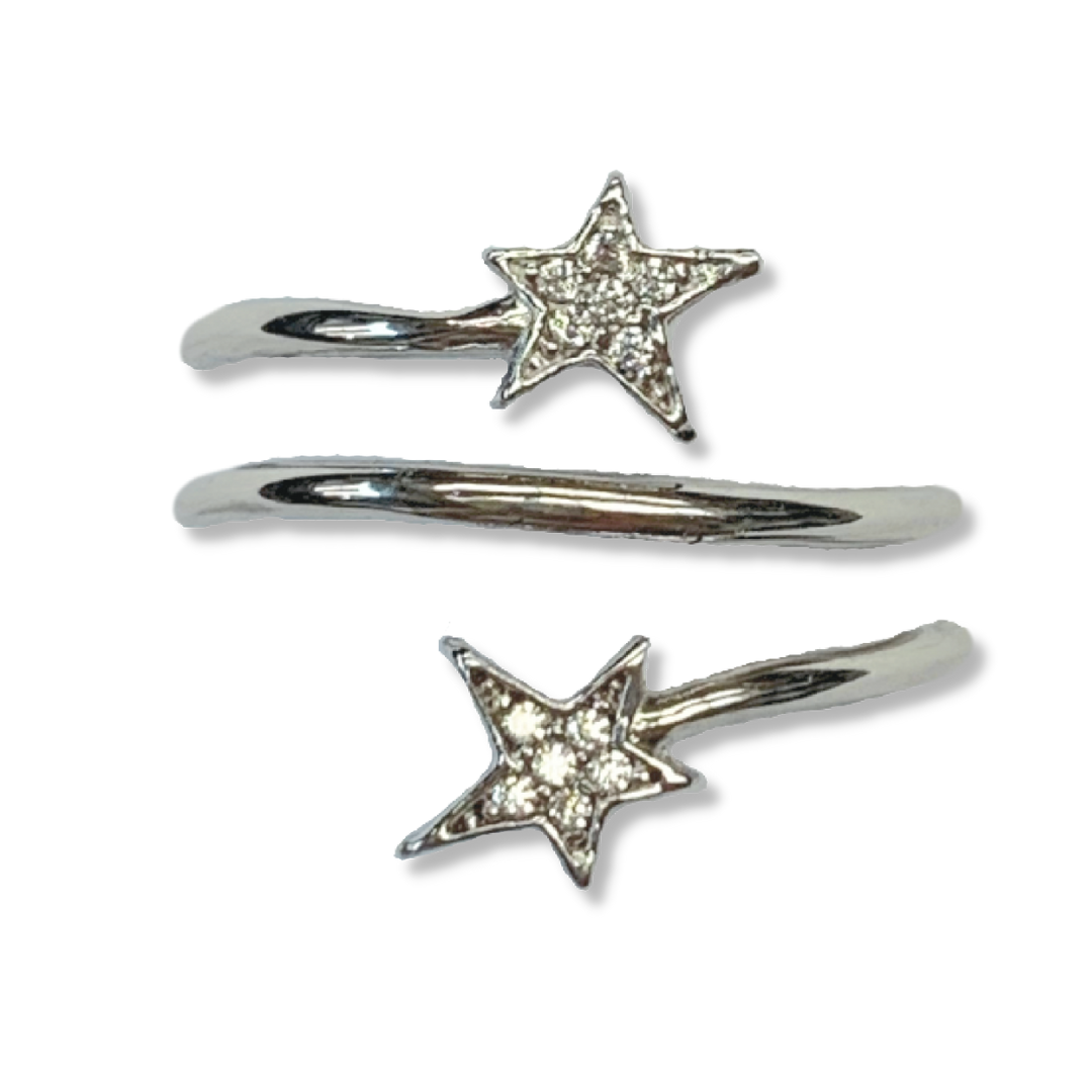Double wrap adjustable ring in sterling silver and white Cubic Zirconia with two Stars. 0,5×0,5 cm