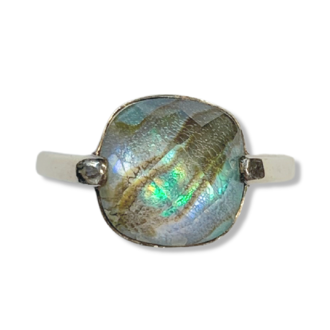 Sterling Silver Green and Purple Marble Cushion Doublet Ring Size7