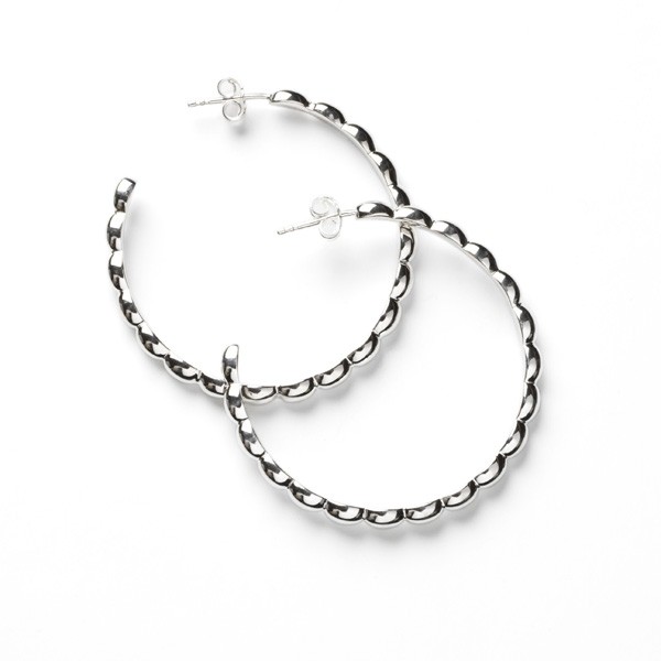 Sterling Silver Rhodium Plated 40mm Large Rice Bead Hoops