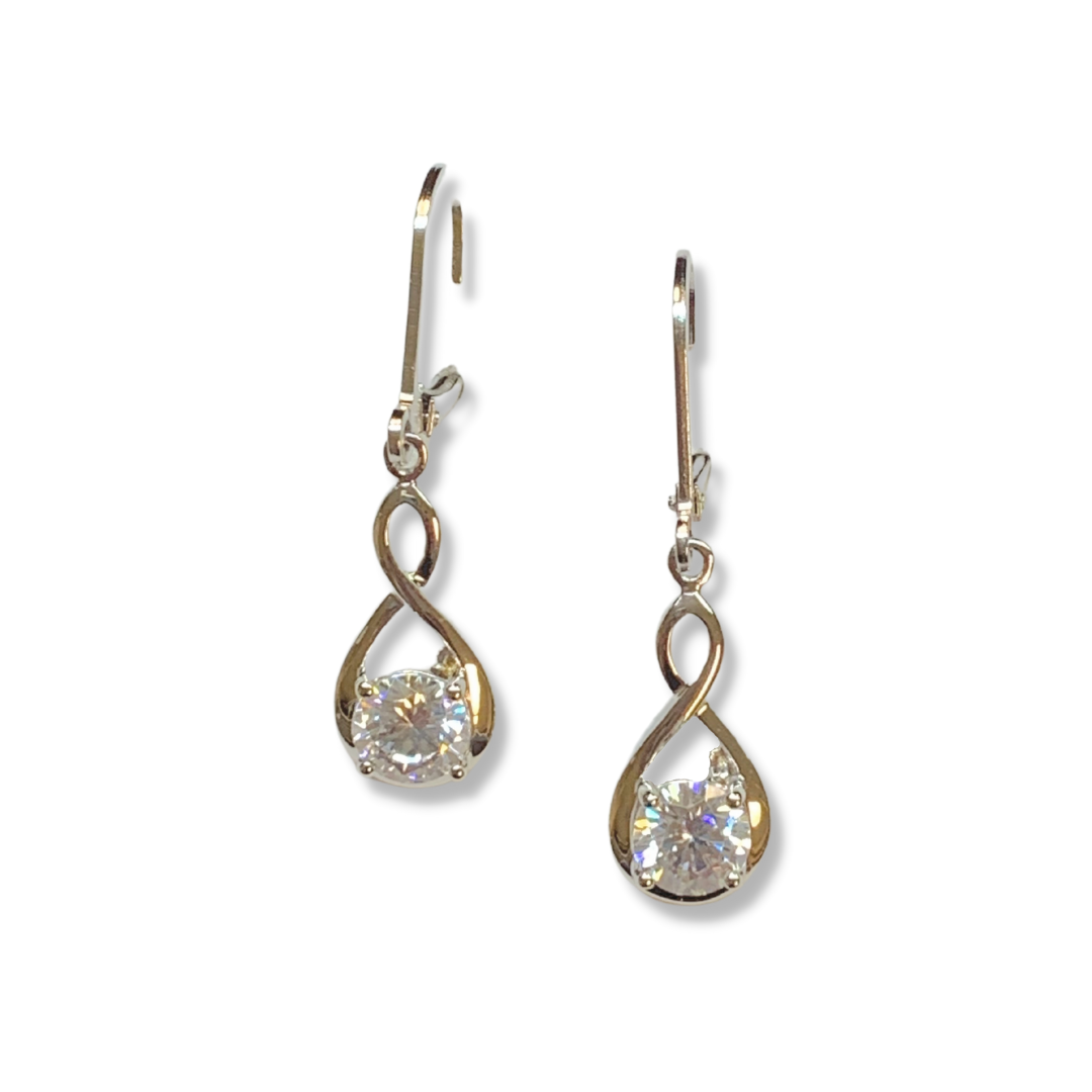 Sterling Silver Rhodium-plated 6mm CZ Teardrop Leverback Dangle Earrings