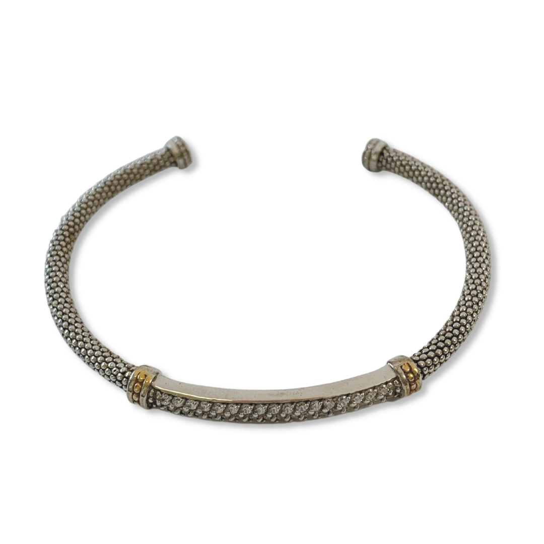 Sterling Silver Cuff Bracelet Center Bar with CZ