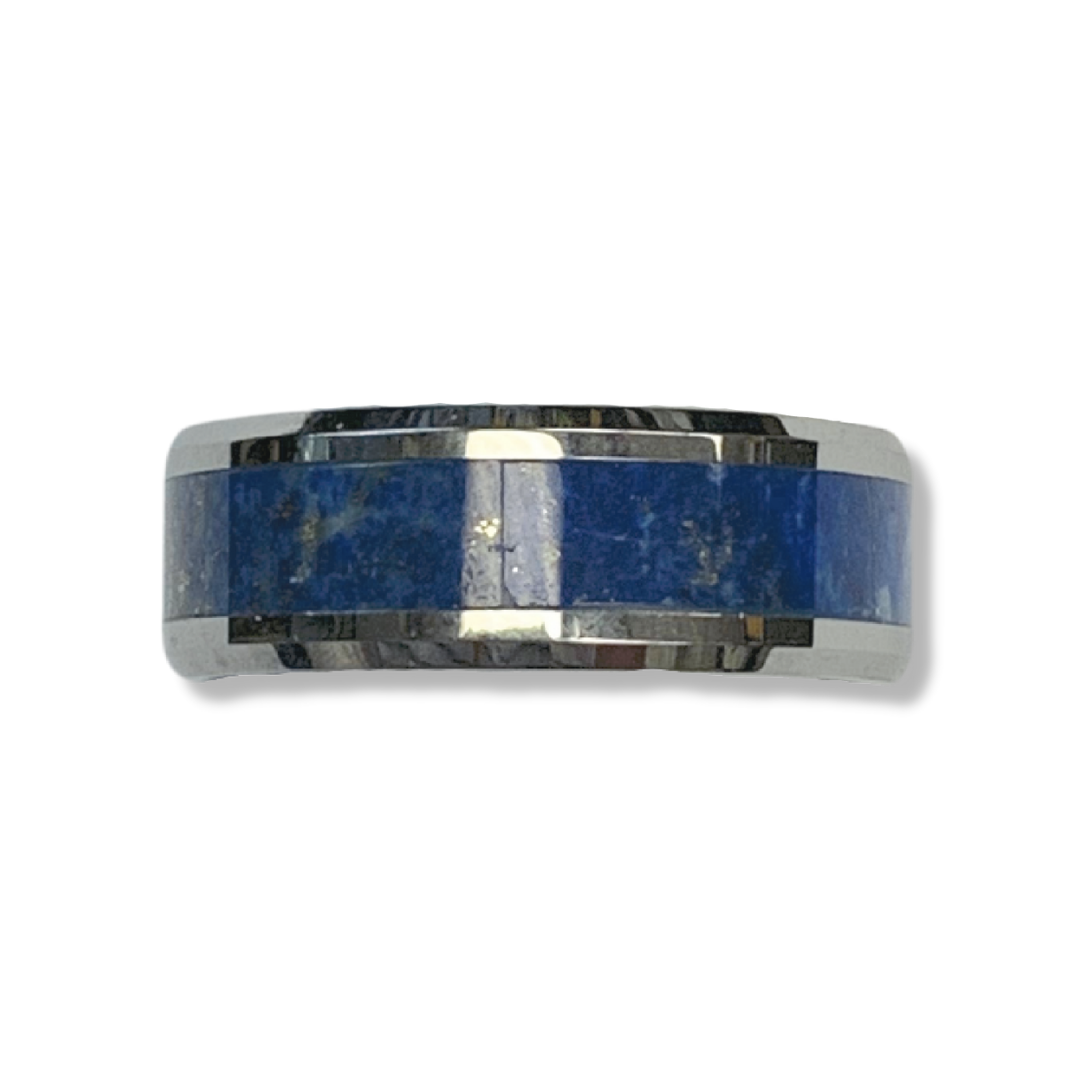 Tungsten Ring with Blue Lapis Inlay