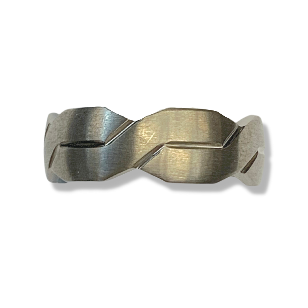 Titanium Infinity Symbol Ring Flat With Brushed and Polished Grooves Size10.5 8mm